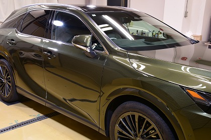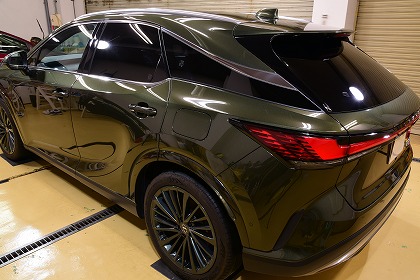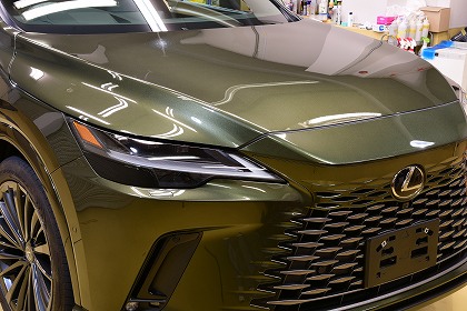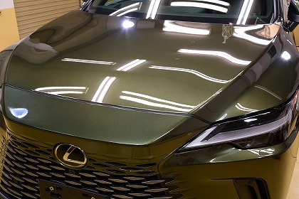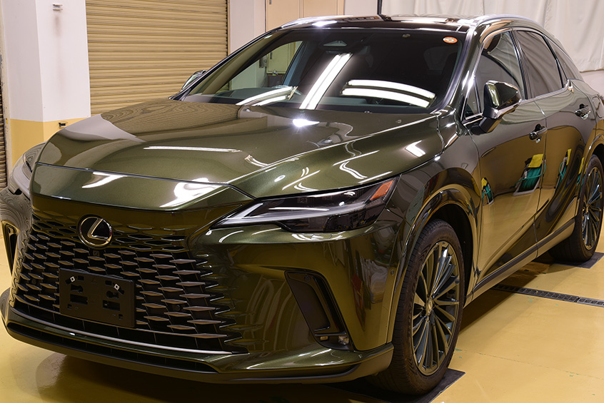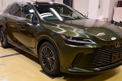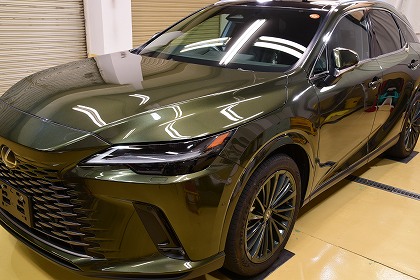 この度は、数あるコーティング店の中からイケタニ美車工房を選んで頂きありがとうございます。 今回ご依頼頂きましたお車は、レクサスのプラグインハイブリッド(PHEV)の「レクサス RX450h+」でございます。 ボディ・カラーは、「テレーンカーキマイカメタリック」と言うのお色でございます。 とても素敵なお色でございます♪ |