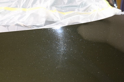 こちら磨き前のボンネットでございます。少し汚れなどでモヤっと言う感じではございますが、拭きキズなどは少なく良い感じでございます。 |