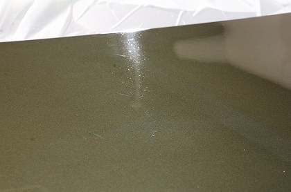 こちらは、ボディの磨き工程を行う前に、ボディの塗装の厚みを計測している様子でございます。塗装の状態を確認してから磨かせて頂きます。 |