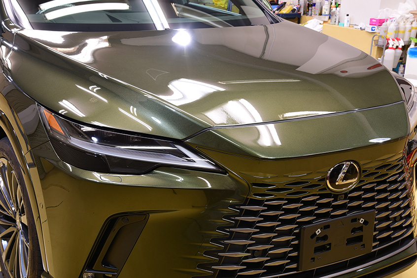 それではこれよりレクサス RX450h+のボディをリフレッシュした後、イケタニ美車工房 厳選のコーティング剤にてしっかりコーティングさせて頂きます。気持ちよくお車にお乗りいただけるよう施工させて頂きます。 |