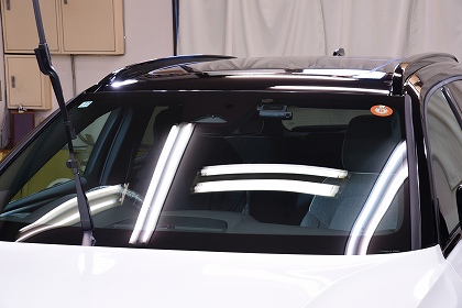 これよりウィンドガラス撥水コーティングを施工させて頂きます。フロントガラスには「ハイグレード撥水コース」を施工中でございます。 |