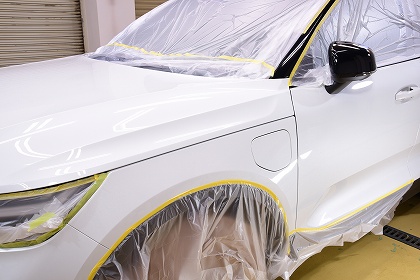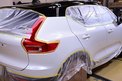 マスキングをしっかり行いましてこれよりコーティング前の磨き工程を開始致します。 |