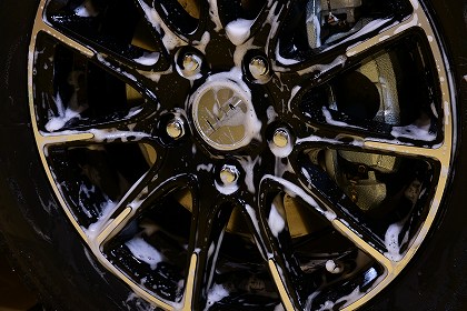 ブラック系のホイールはデリケートですので、優しく洗い流します。 |