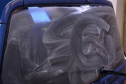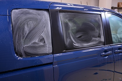 2日目ウィンドガラス撥水コーティングを施工させて頂きます。 まずはウィンド撥水コーティングの下地処理(油膜・汚れ落とし)を施工してまいります。 |