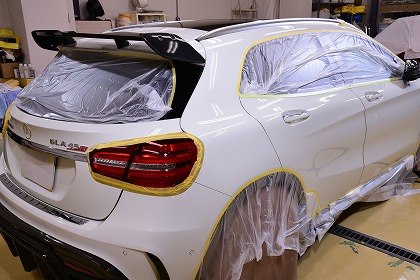 1日目は、まずは6時間近くお時間をかけて洗車させて頂きました。施工前の準備完了でございます。 |