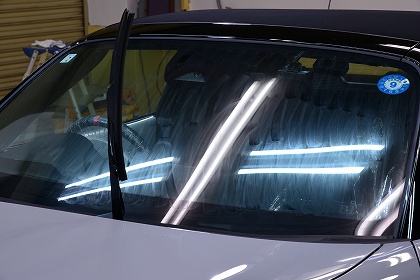 2日目これよりウィンドガラス(全面)ハイグレード撥水コーティングを施工してまいります。 まずはコーティング前の下地処理より行います。 |