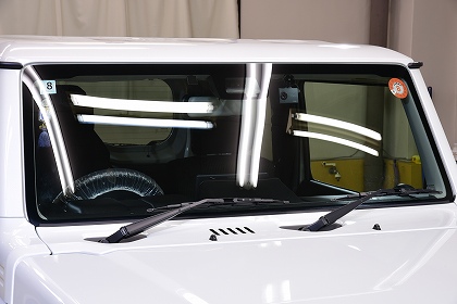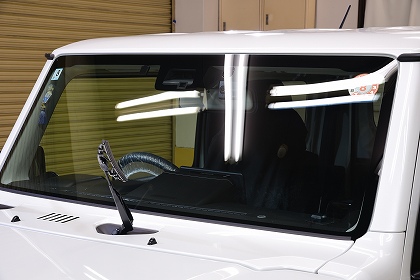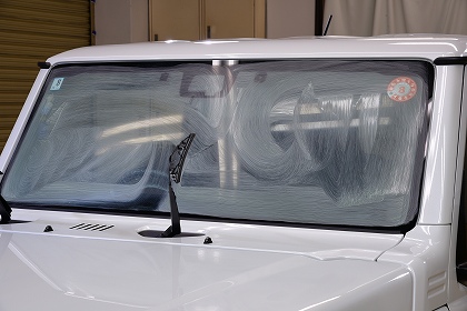 続いては、ウィンド撥水コーティング前の下地処理を開始致します。フロントガラスを施工させて頂きます。 |