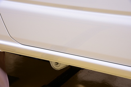 ボンネットを開けたフェンダー上部やステップなどの清掃を行います。新車の場合は、磨くと言うより汚れの有無を確認しながら細々したところを拭き上げ、後ほどのコーティングさせて頂きます部分をより綺麗に致します。 |