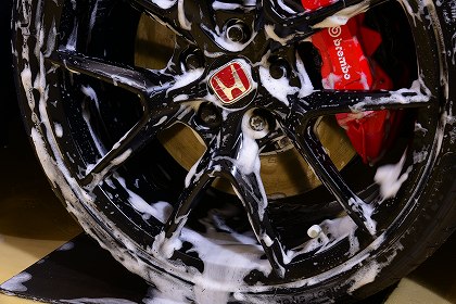 まずはホイールより洗ってまいります。ホイールコーティングのご依頼を頂いておりますので、より念入により洗わせて頂きます。 |