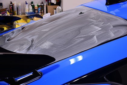 これよりコーティングに向けて磨き工程を開始致します。コーティング前に磨く目的は、よりコーティングの定着が良くなるようにと、お車を更に輝かせるのが目的でございます。 |