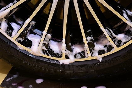 まずはホイールコーティングをご依頼頂いておりますので、ホイールを念入に洗ってまいります。 |