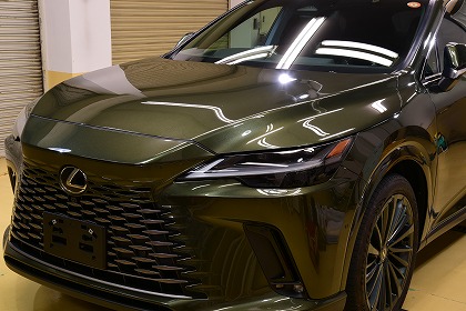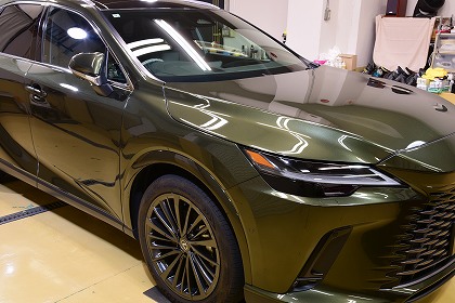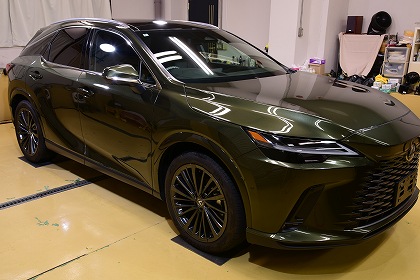 この度は、数あるコーティング店の中からイケタニ美車工房を選んで頂きありがとうございます。 今回ご依頼頂きましたお車は、レクサスのプラグインハイブリッド(PHEV)の「レクサス RX450h+」でございます。 ボディ・カラーは、「テレーンカーキマイカメタリック」と言うのお色でございます。 とても素敵なお色でございます♪ |