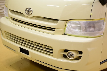 コーティング前の最終段階まで来ました。ボディのコーティング前にフロントグリルやステップなどをもう一度拭いて綺麗にしてからコーティングを施工させて頂きます。 |