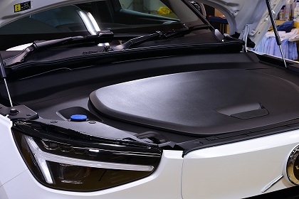 洗車後、ドア内側やハッチ内側、こちらのボンネットなども拭いて綺麗にさせて頂きました。EV、内部は何も見えません。 |