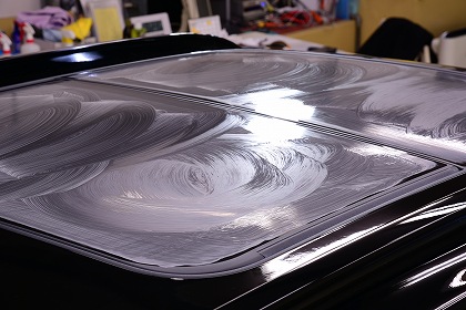 ボンネットより磨き工程を開始致します。ほんの少しでございますが、見逃しそうな小さな汚れ?らしき物が少しございましたが、磨いて綺麗に致しまして、更にピカピカでございます。 |