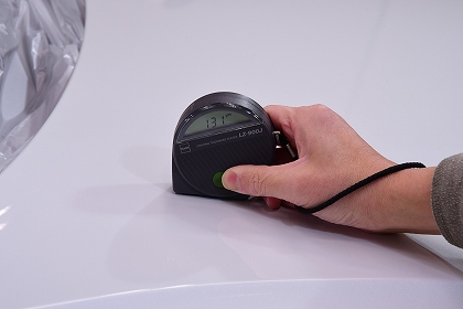 新車でございますので特に問題はございませんが参考まで、ボディの塗装の厚みを計測してから開始致します。また新車の磨きは、大切な塗装を削るような磨きは行いませんのでご安心下さいませ。 |