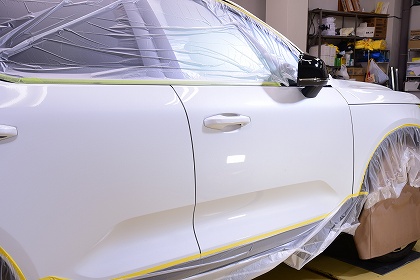 マスキングをしっかり行いましてこれよりコーティング前の磨き工程を開始致します。 |