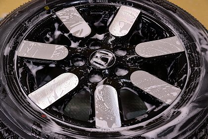 ブラック系のホイールはデリケートですので、優しく洗い流します。 |