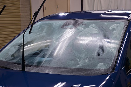 2日目ウィンドガラス撥水コーティングを施工させて頂きます。 まずはウィンド撥水コーティングの下地処理(油膜・汚れ落とし)を施工してまいります。 |
