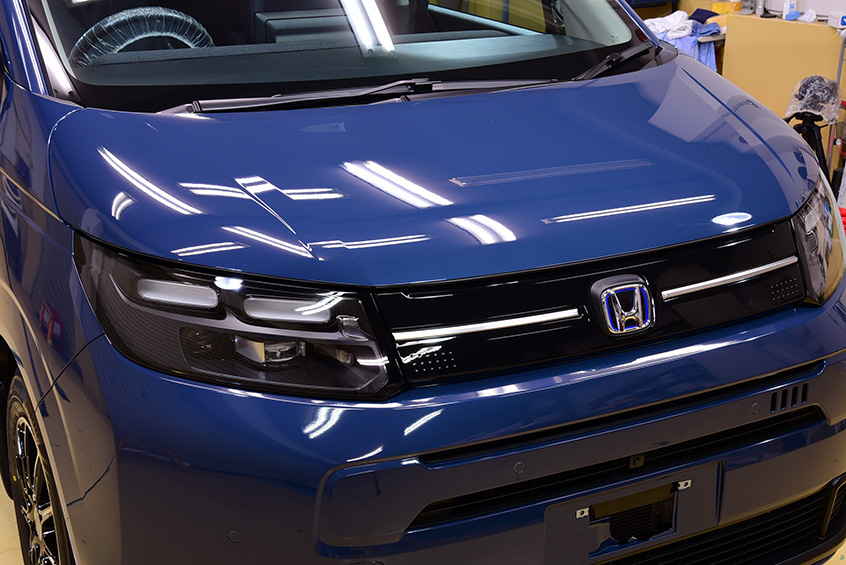 この度は、ホンダ フリード の施工をご依頼頂き誠にありがとうございます。 ご納車されたばかりのピカピカの新車でございます。お色は「シーベッドブルー・パール」でございます。ホンダのHPに書かれております「海底のような静かさを思わせるゆったりとしたブルー」綺麗なお色でございます。 ※すみません、店舗の照明の関係で少し写真が実際のお車と色が違う?と言う感じとなってしまっていること申し訳ございません |