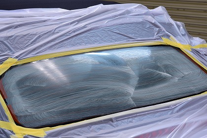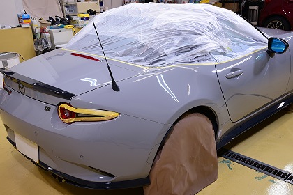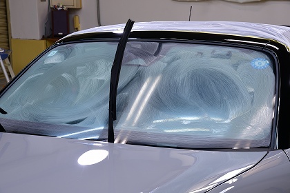 マスキングをしっかり行いましてこれよりコーティング前の磨き工程を開始致します。 |