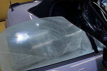 2日目これよりウィンドガラス(全面)ハイグレード撥水コーティングを施工してまいります。 まずはコーティング前の下地処理より行います。 |